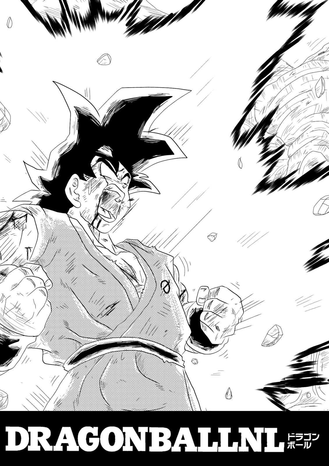 – “Es demasiado fuerte…” – se lamenta Goku. – “Mi cuerpo no resistirá mucho tiempo. Tengo que acabar con esto.” – murmura mientras aprieta sus puños con fuerza. – “Voy a darlo todo. Espero que salga bien.”