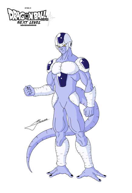 – “Veo que no conoces la leyenda del Súper Saiyajín”. – sonríe Vegeta, que se transforma en Súper Saiyajín Blue. – “Permíteme que te la cuente”.