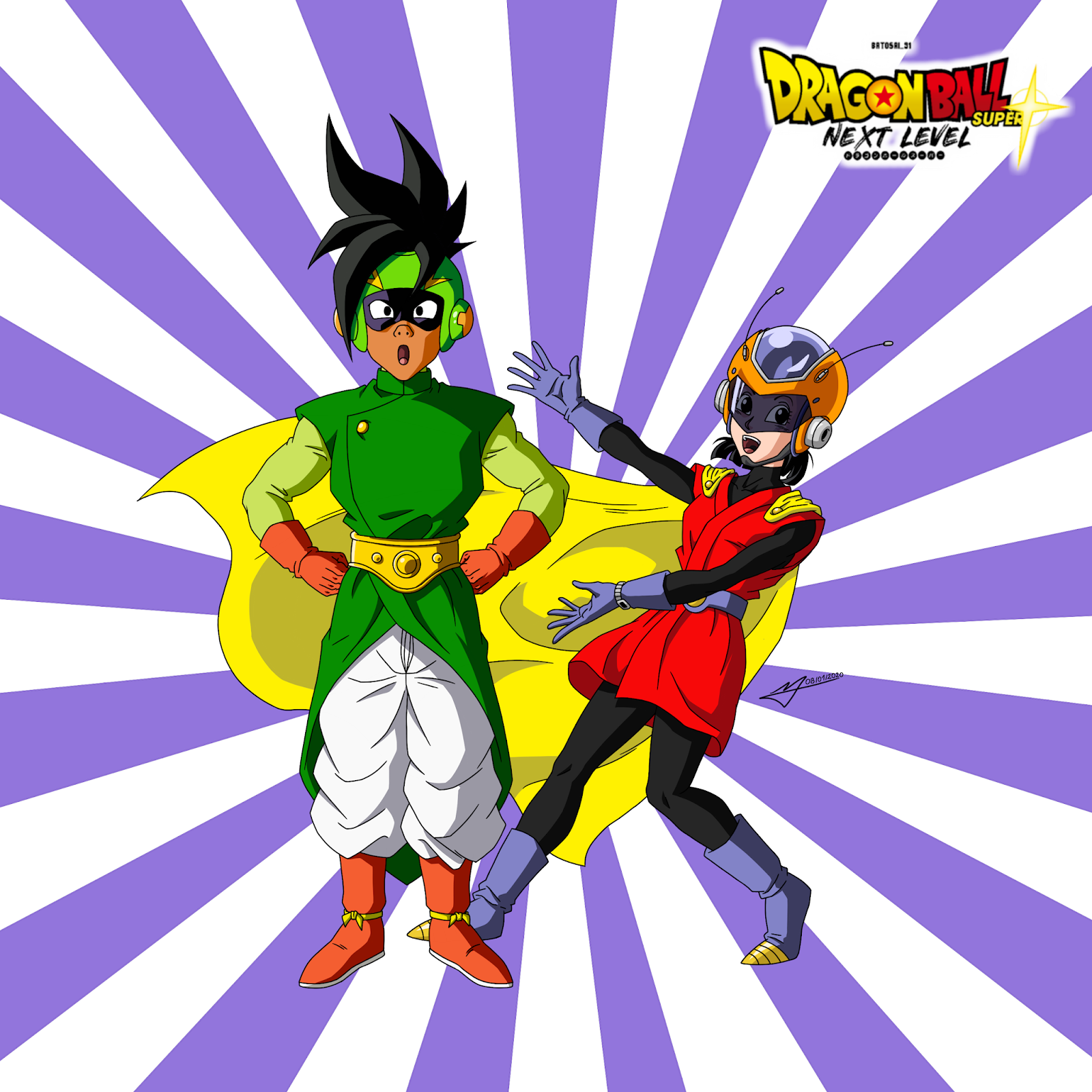 Ub, con su magia, ha creado un disfraz inspirado en el Great Saiyaman y los Kaioshin, las dos figuras de autoridad que han cruzado su mente en ese instante. El traje es verde, con casco a juego, pantalón blanco y guantes y botas naranjas.