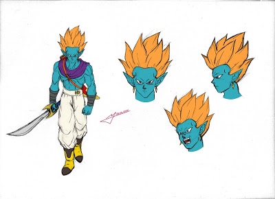 3. ¡Gracias!La melena de Gohan en este estado es más larga que el SS4 de GT, porque en DBSNL es la mezcla de SS3 y ozaru. No sé si en el futuro haré a algún retoque a la transformación (actualmente ha perdido el mechón, por ejemplo).Vegeta en ese momento de la historia (torneo) no dominaba el KK, así que su aura emitía destellos.
