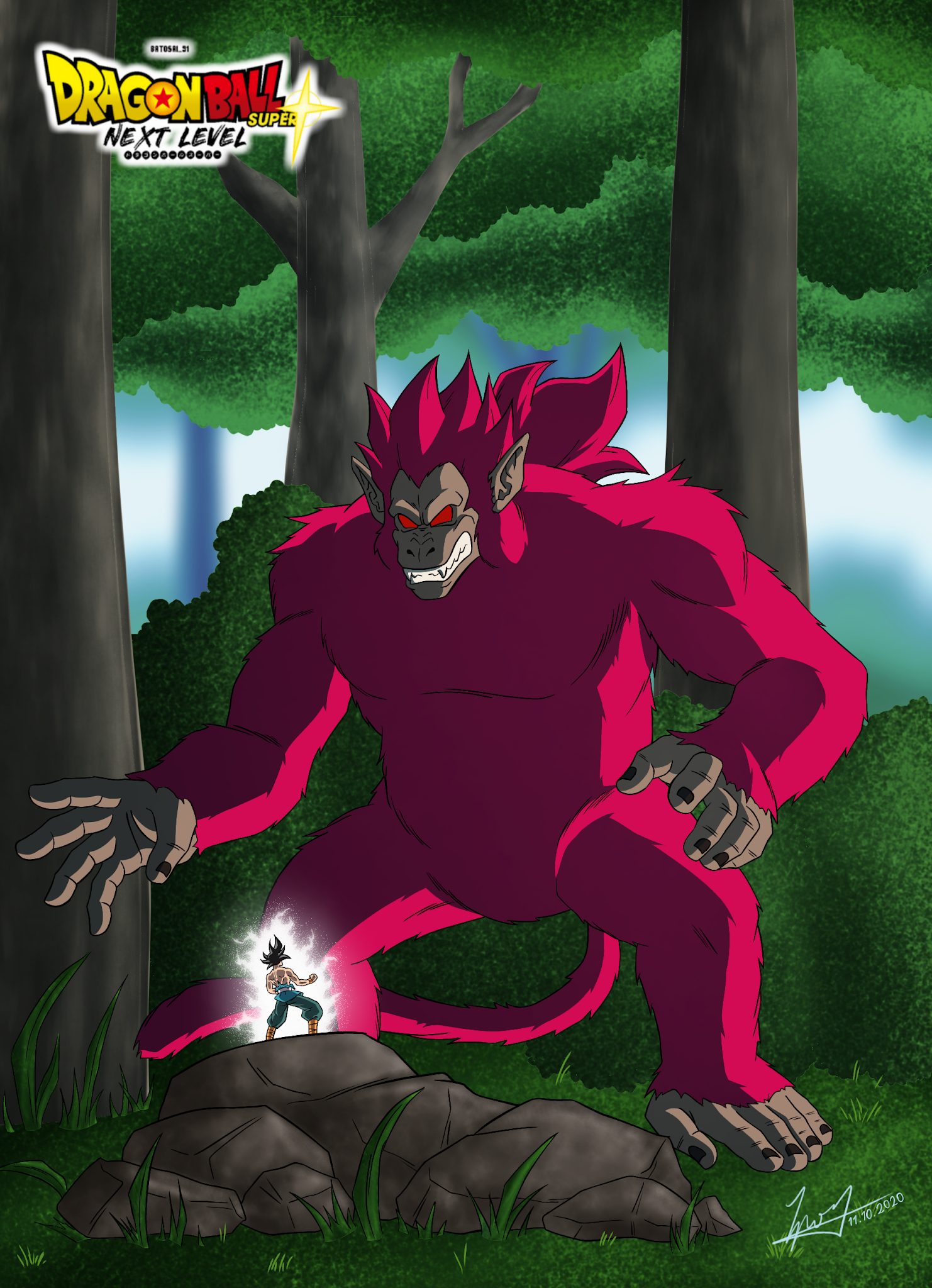 De repente, una nueva energía alarma al saiyajín, que mira hacia el umbral entre planetas. Broly, con los ojos en blanco y una mueca de odio en su rostro, cruza el nebuloso portal y llega a Monmaas.
