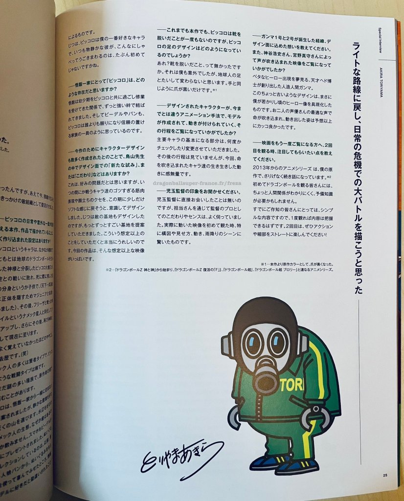 En el estreno, se repartió un libreto a los asistentes, donde entre sus páginas, encontramos una pequeña entrevista al padre de la criatura: Akira Toriyama.