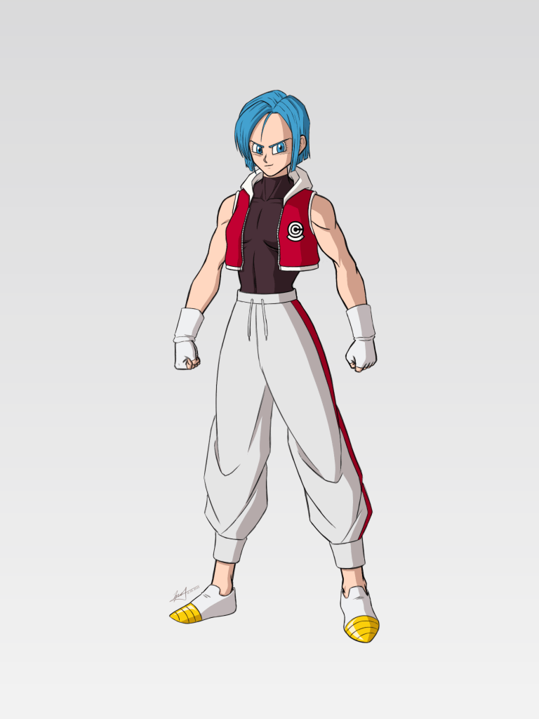 La hija de Gohan sale volando hacia él, pero es interceptada por un pequeño ser azulado propulsado por vapor a presión, que le propina un cabezazo y la lanza contra un edificio.