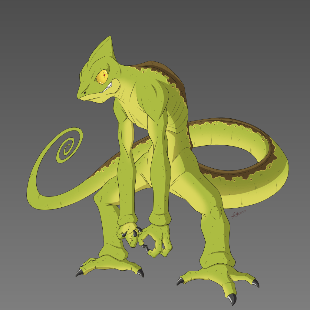 El camaleón se arrastra intentando alejarse del demonio, intentando también camuflarse de nuevo, pero su cuerpo no se lo permite. Varios cambios de color recorren su piel sana, pero ninguno logra hacerlo invisible.