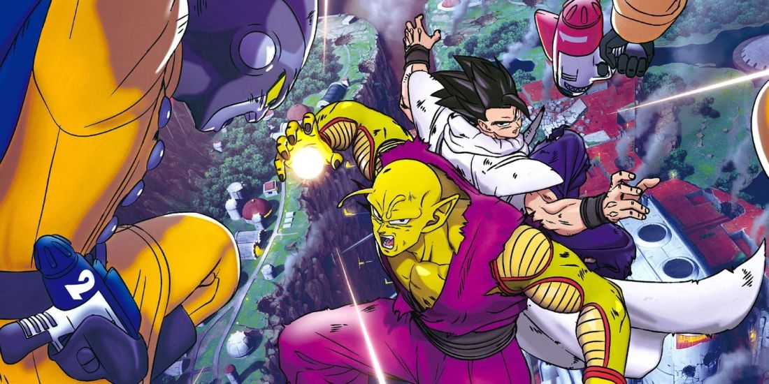 Mientras tanto, Gohan, Trunks, Slug, Krilín y Shula están reunidos.