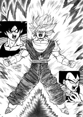 – “Es curioso, pero siempre he tenido que ver cómo te mataban otros.” – continúa el saiyajín. – “No diré que no me gusta verte humillado de esa manera, pero siempre imaginé cómo hubiera sido hacerlo yo mismo.”
