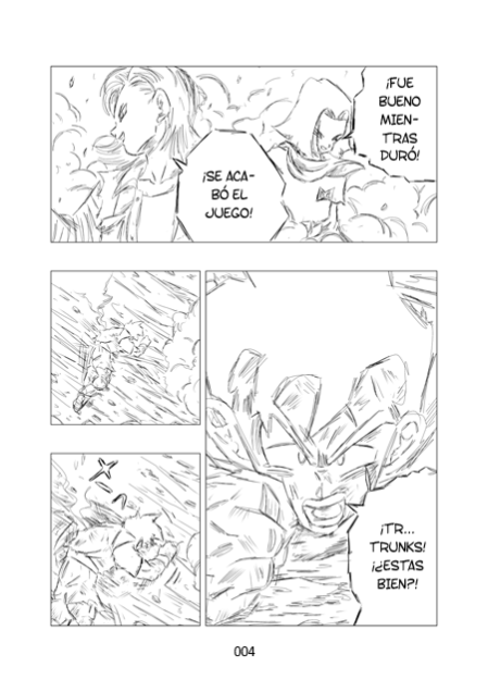 – “Hola a todos” – dice con extrema serenidad. – “Veo que os habéis hecho mucho más fuertes… ¿Cómo va todo, Vegeta?” – le saluda particularmente.